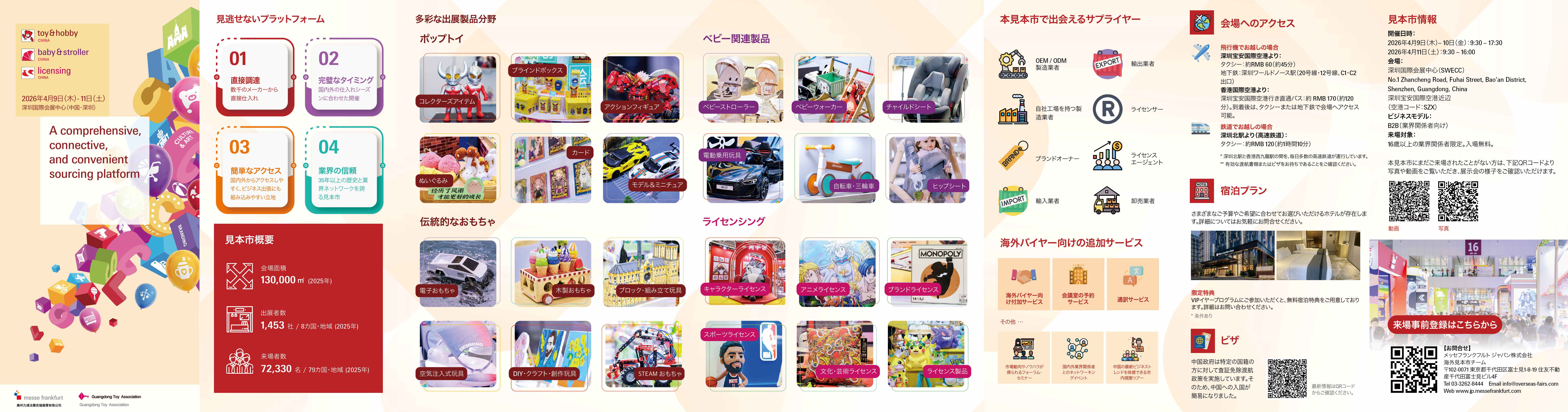 The 2026 edition Shenzhen Toy and Hobby, Baby and Stroller, Licensing China Fair is returning on 9 - 11 April, 2026 at the Shenzhen World Exhibition & Convention Centre. In 2025, our show attracted 1,453 exhibitors, 2,100+ brands and 72,330 trade visitors all over the world on the 130,000sqm exhibition space. In 2026, the Trendy Toys and Collectibles zone is returing, in response to the fast-growing demand from the toy industry and booming market. Save your date and join us!